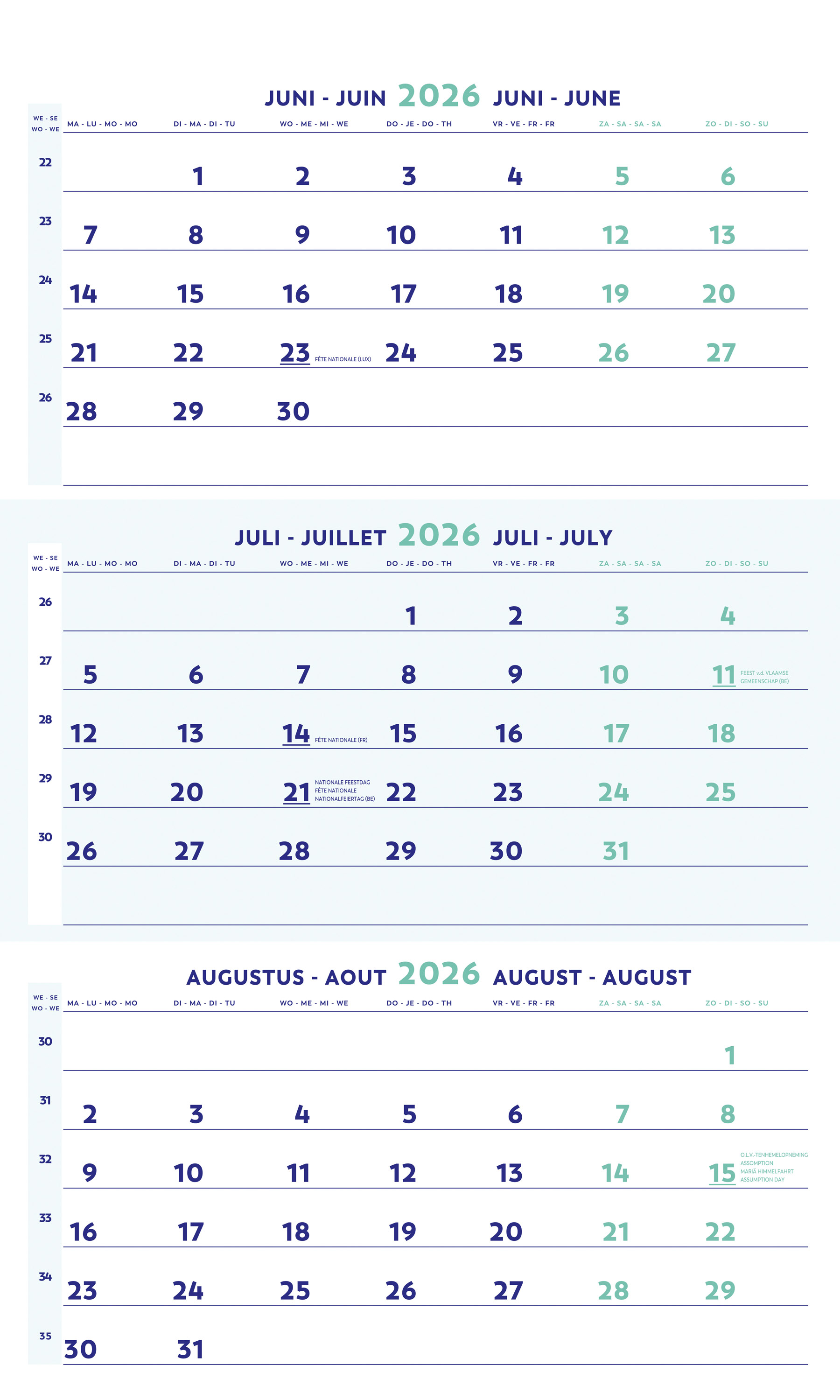 Bilingual quarterly calendar 2023 on bruneau.nl