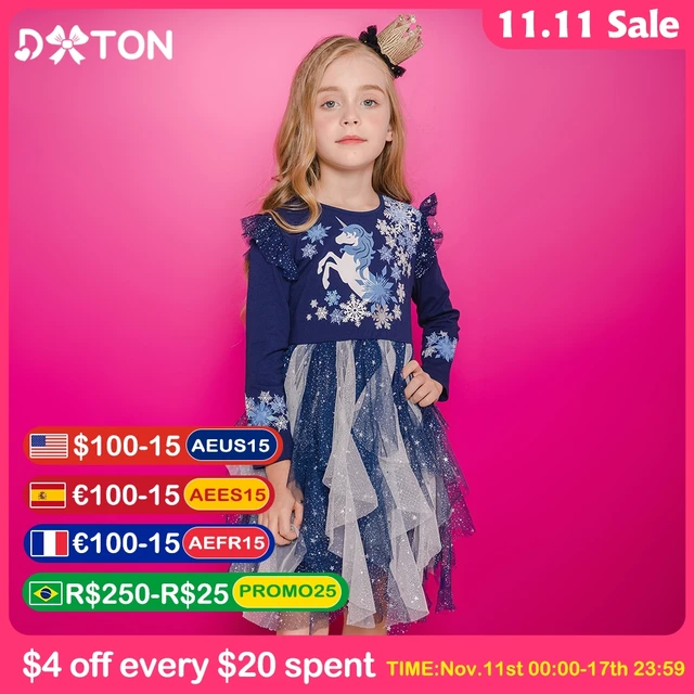 DXTON Christmas Girls Dress 2024 New Year Party Princess Tutu